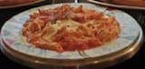 Ziti in marinara sauce baked with mozzarella.